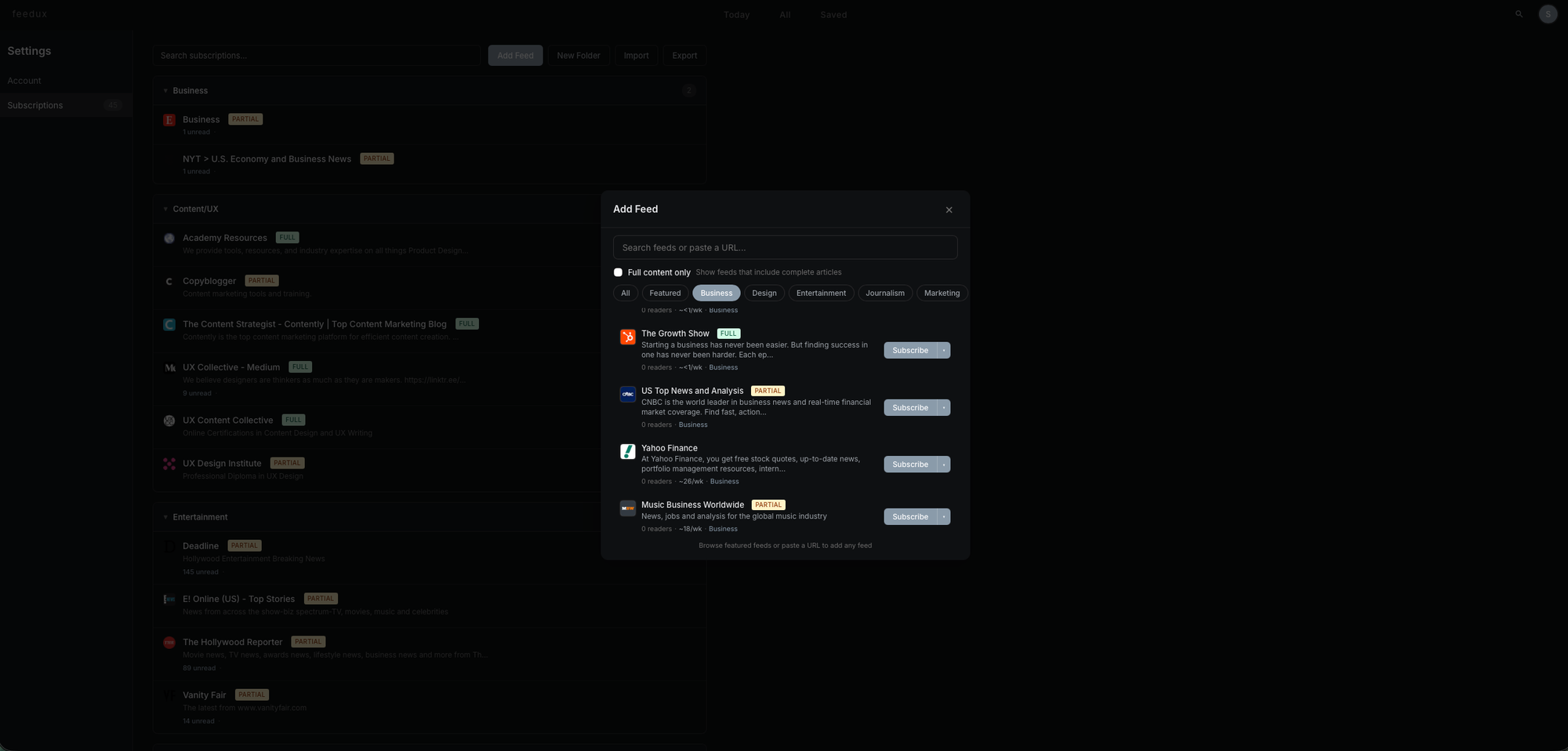 Pardon the very-much-in-progress settings UI. But, behold! I've implemented a sort of feed library — a discovery tool. And it's built to suss out which feeds are partial and which feeds are providing full content.