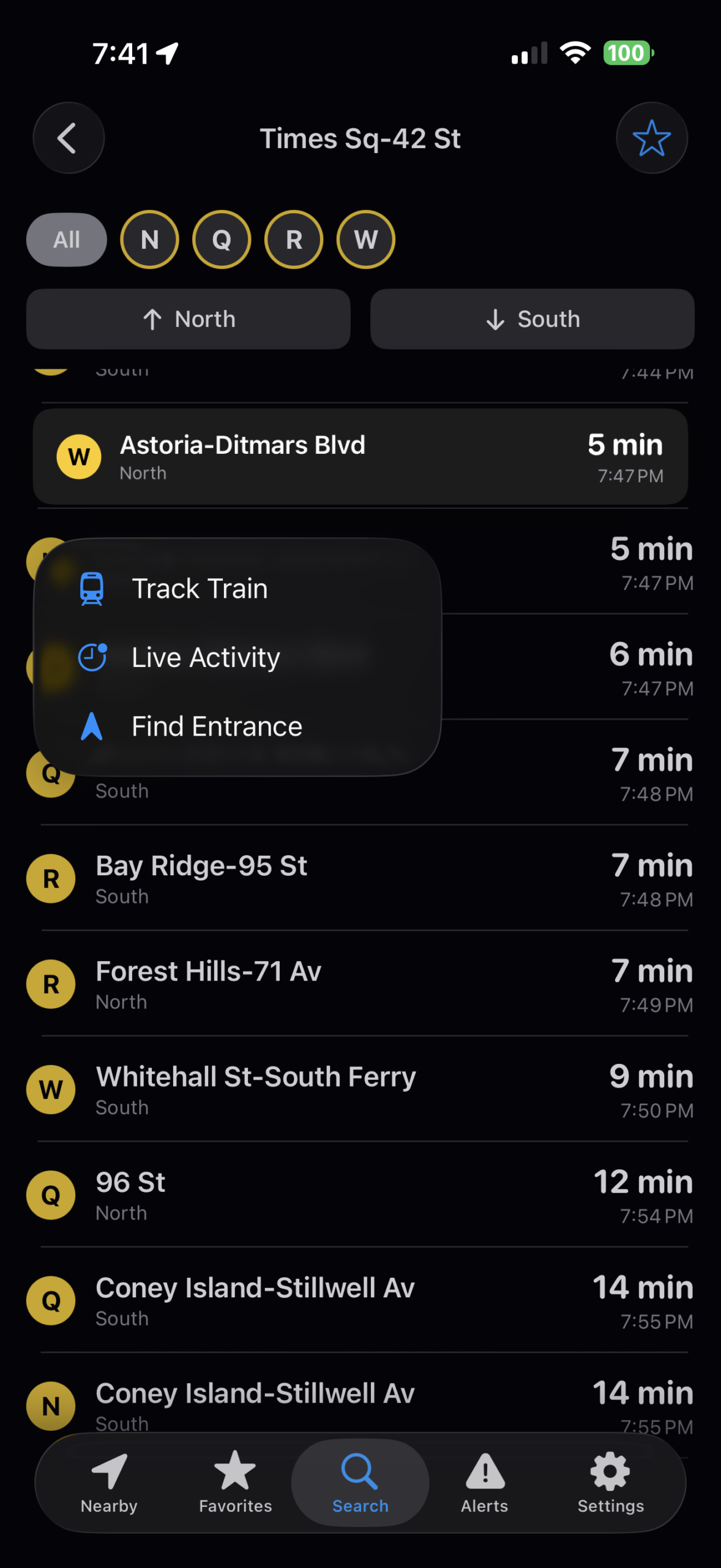Well. I messed the continuity up. Long press on a W trip and then took a screenshot of an R trip. Oh well. Also, it looks like I'll be walking awhile to get to the closest entrance for Times Square-42nd St.