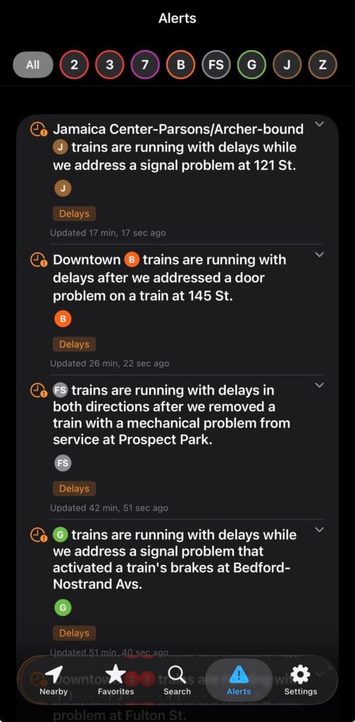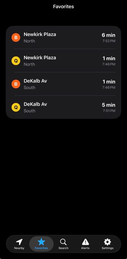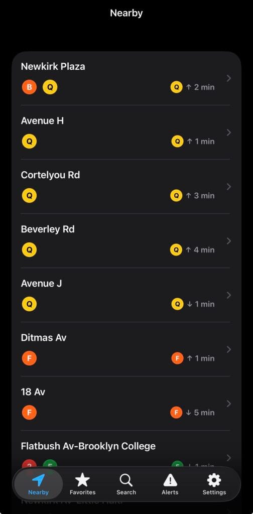 There are some neat subway-focused web apps out there, too, such as realtimerail.nyc and closingdoors.nyc. I took a bit of inspiration from a few of them (example: I made a "real-time" countdown to a route's arrival an option in Settings; closingdoors.nyc does this and it's really cool). I just wanted something native that could allow for a bit of personalization.